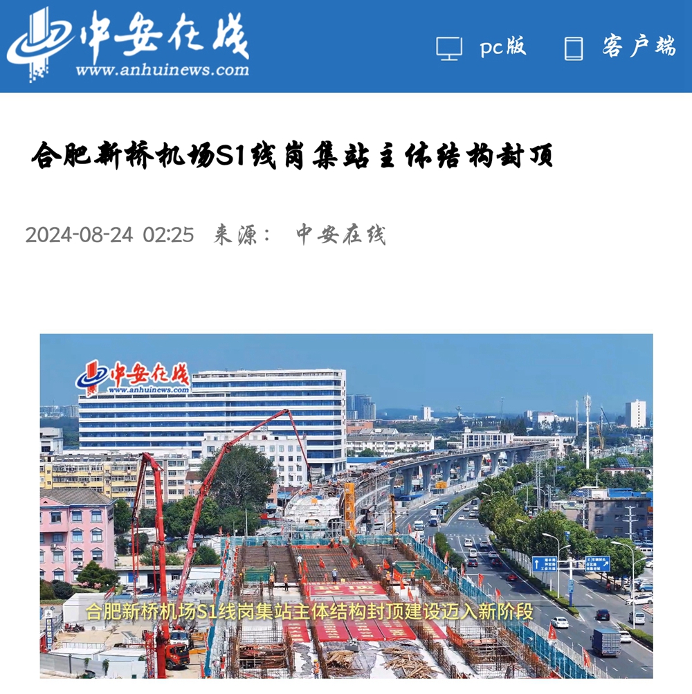 【名媒聚焦】央廣網(wǎng)、中安在線、安徽日?qǐng)?bào)等主流媒體聚焦合肥新橋機(jī)場(chǎng)S1線項(xiàng)目崗集站主體結(jié)構(gòu)封頂