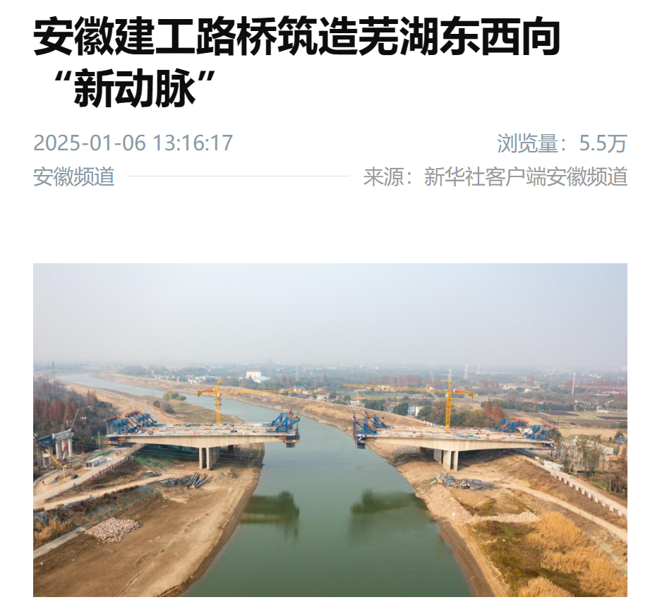 【名媒聚焦】新華社安徽頻道:安徽建工路橋筑造蕪湖東西向“新動脈”