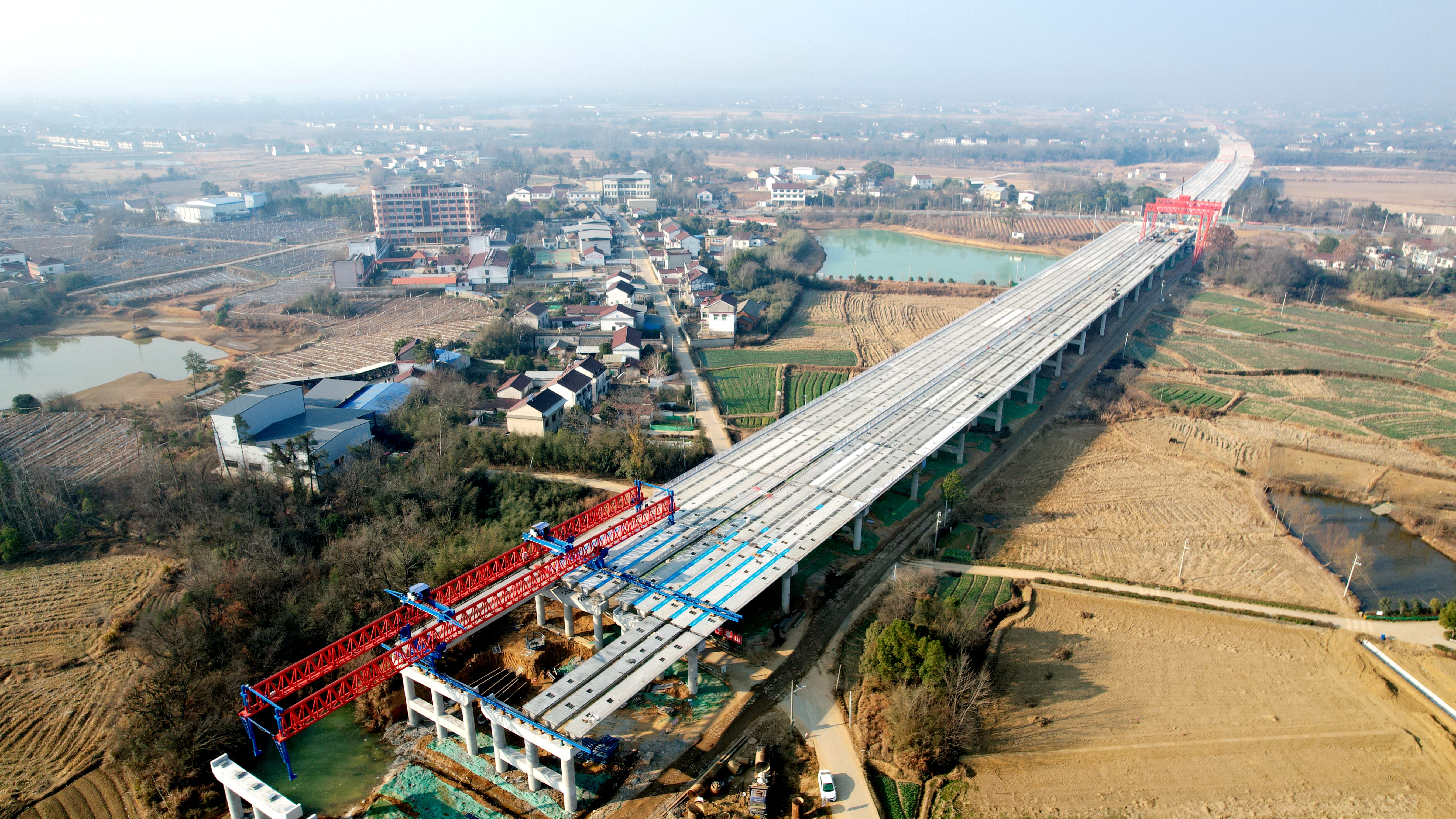 皖水河特大橋全長3.59km,橫跨皖水河、梅河、珠流河三條河流,跨越016鄉(xiāng)道及多條管道,跨度大、交叉施工多。從第一根樁基施工以來,項(xiàng)目圍繞工期節(jié)點(diǎn)不斷優(yōu)化施工方案,狠抓現(xiàn)場安全質(zhì)量管控,全力沖刺階段性目標(biāo)任務(wù)。