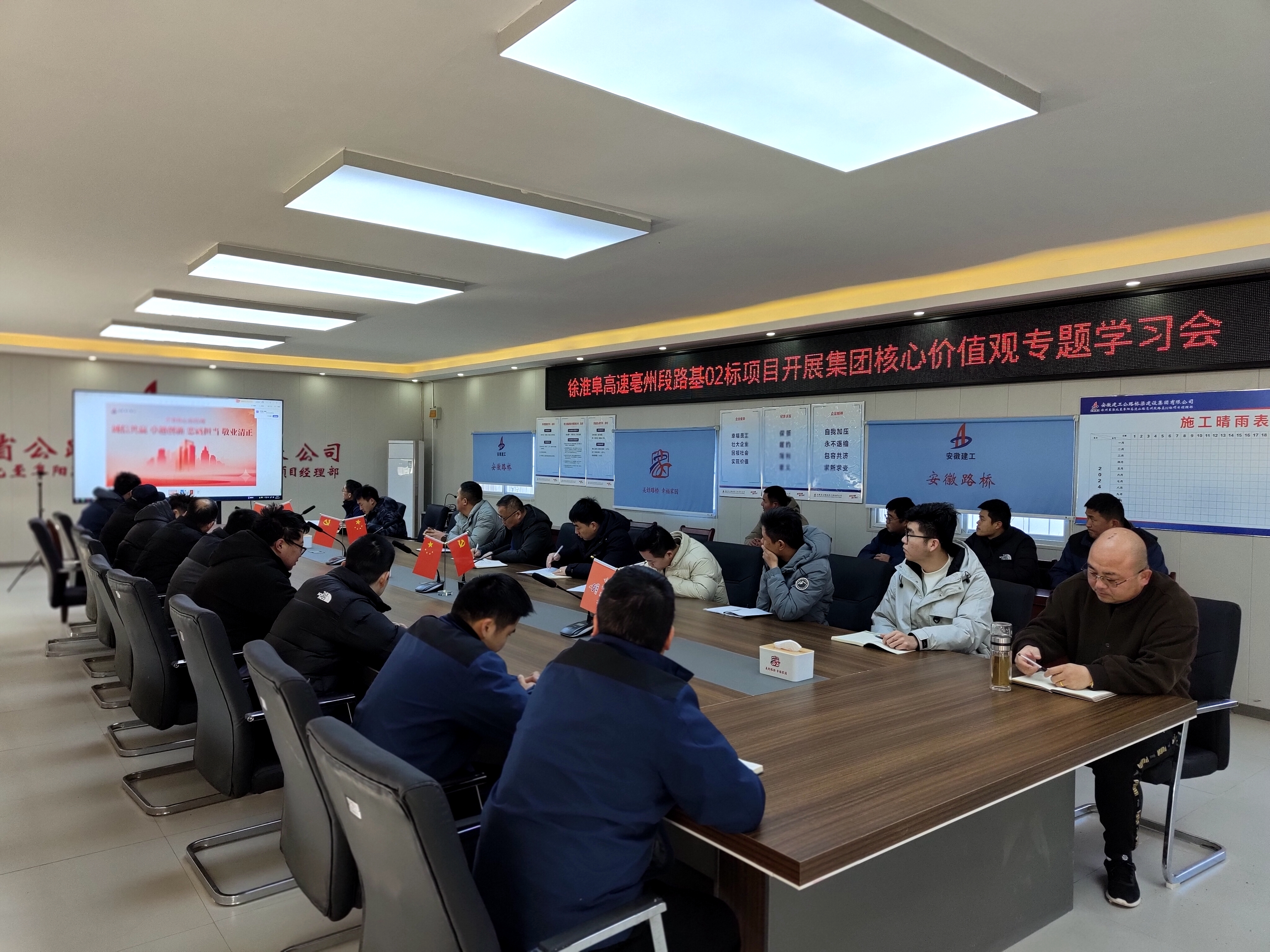 徐淮阜高速淮北段項目學(xué)習(xí)宣傳集團(tuán)核心價值觀,強(qiáng)調(diào)要立足崗位實際充分領(lǐng)會核心要義。