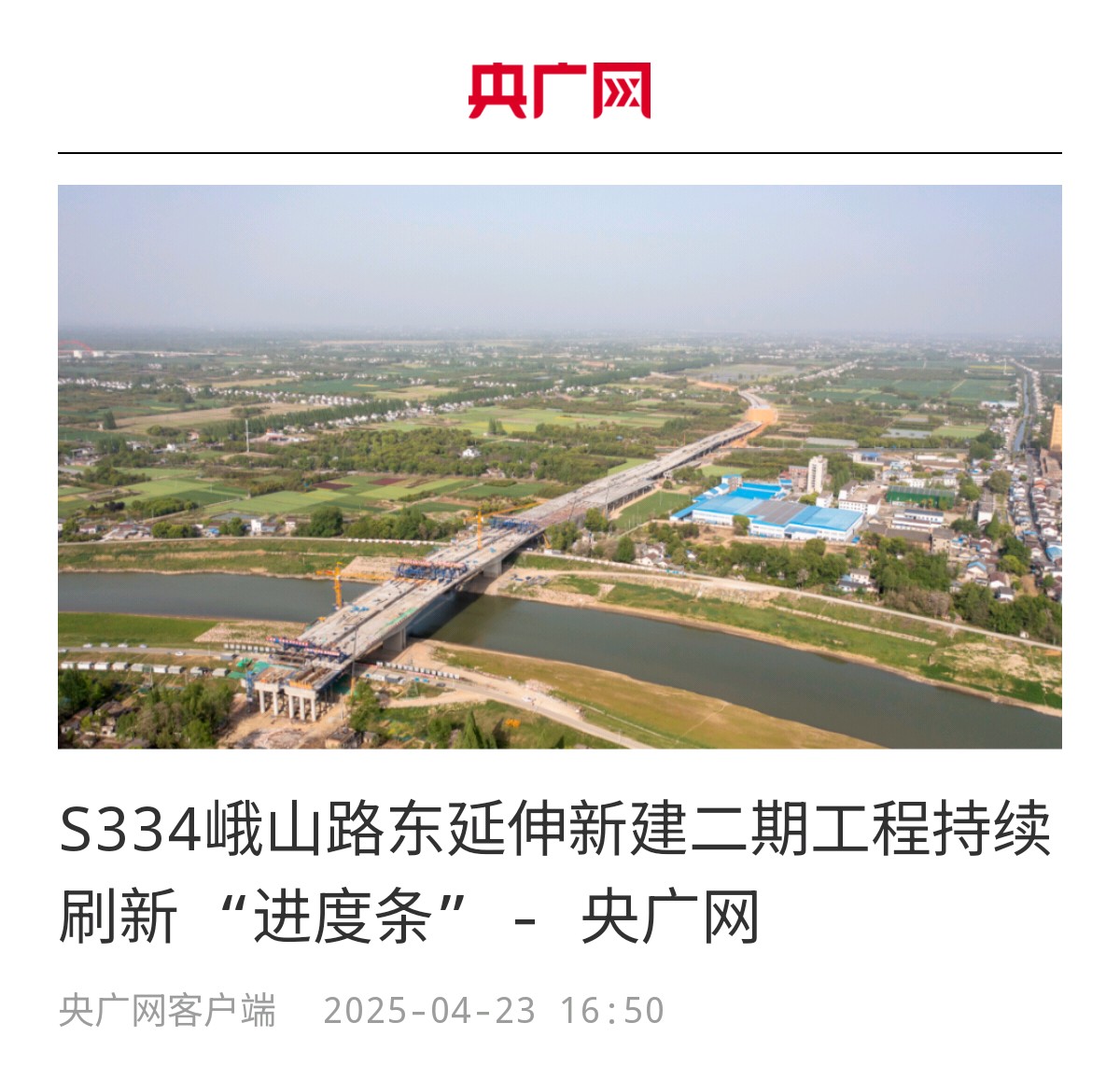 【名媒聚焦】央廣網(wǎng):S334峨山路東延伸新建二期工程持續(xù)刷新“進度條”