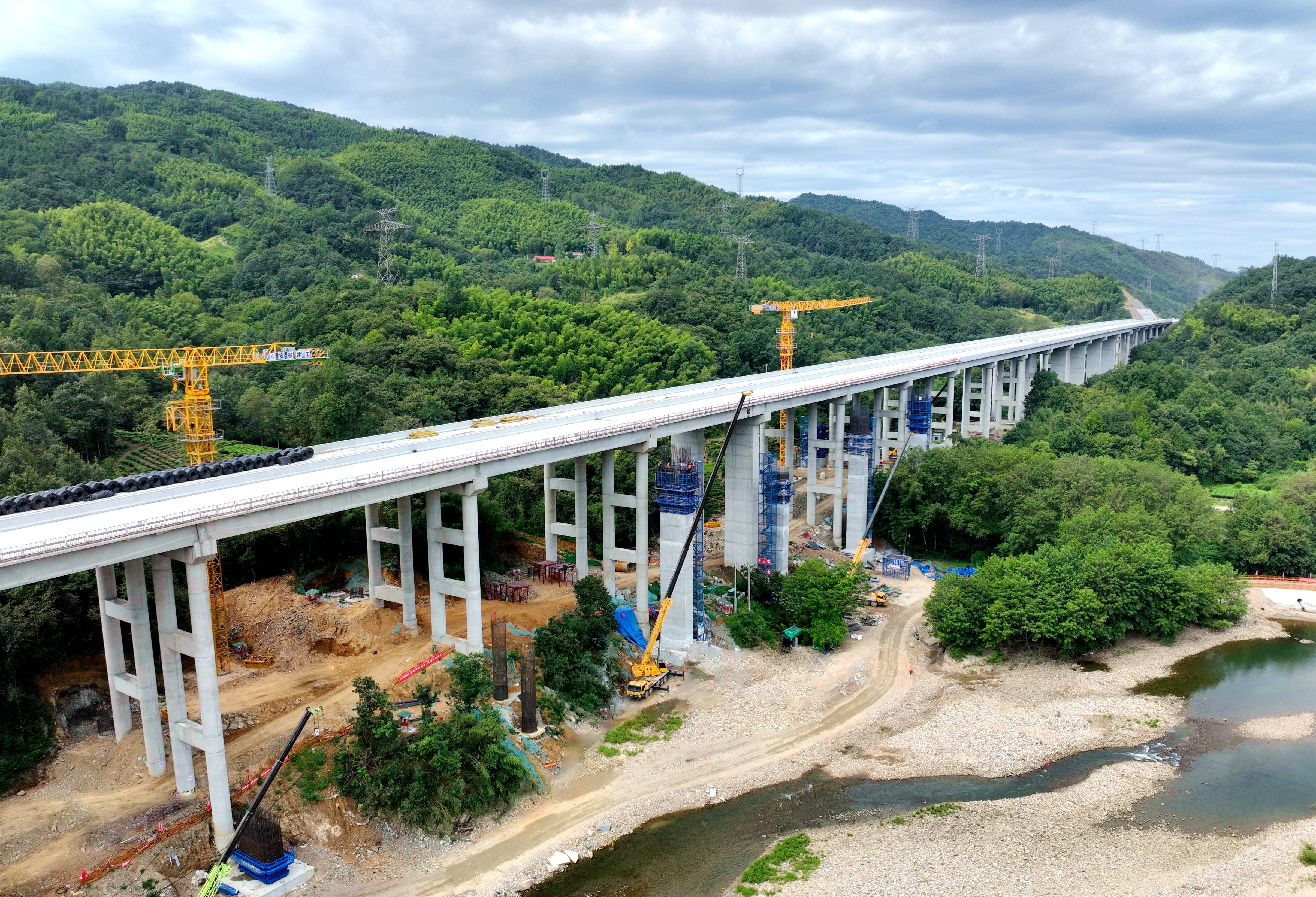 橋梁拼寬就像一場難度極高的“心臟搭橋手術(shù)”,安全風險高、工期壓力大。項目團隊通過優(yōu)化施工組織設(shè)計,增加班組和機械設(shè)備投入,根據(jù)實際情況調(diào)整施工工序,采用平行作業(yè)與交叉作業(yè)相結(jié)合的方式,克服橋址區(qū)軟基地質(zhì)、便道貫通難度大、雨季施工等困難,有效提高施工效率。9月3日,項目率先完成全線首個空心薄壁墩封頂,30多米高的墩柱如巨人手臂般破土而出。目前,樁基工程澆筑144根,完成墩柱28根,承臺17座,預制T梁3片,預計10月底前完成拼寬橋梁板架設(shè)。