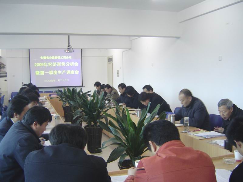 2月28日,公司在四樓會(huì)議室召開2009年經(jīng)濟(jì)形勢分析會(huì)暨第一季度生產(chǎn)調(diào)度會(huì)。公司領(lǐng)導(dǎo)班子成員、直屬(生產(chǎn))單位負(fù)責(zé)人、機(jī)關(guān)部門負(fù)責(zé)人、直屬項(xiàng)目部經(jīng)理、總工和財(cái)務(wù)負(fù)責(zé)人共計(jì)50余人參加了會(huì)議。會(huì)議由副總經(jīng)理盛明宏主持。