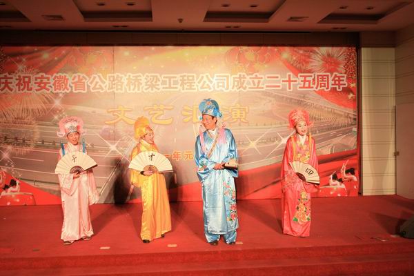 由環(huán)通公司表演的鼓樂《榮耀之光》將匯演氣氛充分展開,在激昂的鼓聲中全體員工看到了過去的榮耀,同時也看到了未來安徽路橋的榮耀之光。隨后的路面公司男聲獨唱《想家的時候》表達了路橋人舍小家為大家的“路橋情”。現(xiàn)代舞《nobody》將歡快的舞曲、嫵媚動感的舞蹈結(jié)合在一起,展示出路橋青年人可愛的一面。四分公司表演的三句半·路橋雜談——《四大才子》,不時讓觀眾捧腹大笑。男聲組合唱《80、90的歌》用美妙的歌聲征服了觀眾。詩朗誦《安徽路橋人之歌》結(jié)合湖北宜巴項目抗洪救災的事跡,歌頌了路橋人勤奮苦干的風采。公司機關(guān)的美麗姑娘攜手獻上了神秘充滿愛的《印度舞》,將觀眾帶入美妙高雅的民族舞蹈藝術(shù)殿堂,體現(xiàn)高尚的藝術(shù)品位和追求。橋梁公司年輕人表演了小品《路橋人的節(jié)目》,展示了路橋員工如何開動腦筋,為文藝匯演獻上最好的節(jié)目……