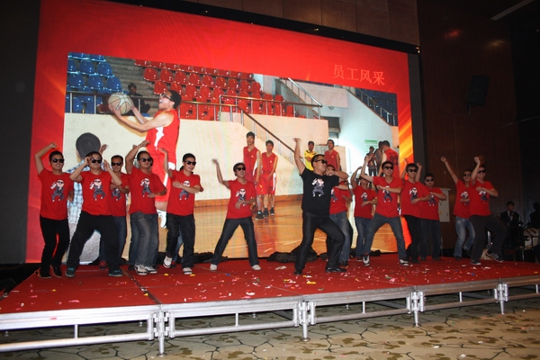 音域?qū)拸V,音色純正的男生獨唱《一生中最愛》,感情豐沛,對公司特有的情懷溢于言表;來自江西撫吉高速項目的歌曲串燒極具舞臺表現(xiàn)力,唱出了對公司的每位兄弟姐妹的美好祝愿;十年風雨共濟,十年不離不棄,宣寧項目自編自演的光影節(jié)目《十年》,黑白的影像,鏗鏘的獨白,展現(xiàn)了公司十年光輝歷程及對未來美好前景的祝愿,展現(xiàn)了鑄就恢弘藍圖的飽滿信心,引起了現(xiàn)場全體觀眾的內(nèi)心共鳴;后勤隊合唱《眾人劃槳劃大船》,讓我們感覺到了團結(jié)就是力量,離夢想的步伐將會越來越近;宣貍五標青年團隊引領(lǐng)潮流,團隊風采展示融合時下流行的《江南style》舞蹈,引爆全場,將聯(lián)誼會氣氛推向高潮;一首《牽手》,真情流露,溫柔而富有感性;租賃公司情景劇《瘋狂走四方》更是搞笑吐糟,引起陣陣掌聲,再一次讓現(xiàn)場氣氛推向高潮。