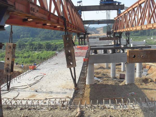 5月28日下午4時(shí),在陣陣喜慶的鞭炮聲中,隨著箱梁的穩(wěn)穩(wěn)落下,績(jī)黃高速02標(biāo)K12+976.5大橋第一片箱梁成功安裝。此次安裝的箱梁長(zhǎng)25米、寬2.85米、重72噸,是第十跨右幅邊梁。據(jù)悉,這是績(jī)黃高速公路全線安裝的第一片箱梁。