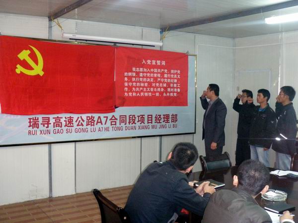會議開始由黨支部書記帶領(lǐng)大家學(xué)習(xí)了公司關(guān)于發(fā)展黨員基本程序的學(xué)習(xí)材料,使大家進(jìn)一步了解到公司發(fā)展黨員的程序。會議的第二項議程是討論3名預(yù)備期已滿的預(yù)備黨員轉(zhuǎn)為正式黨員的問題。首先, 3名預(yù)備黨員分別介紹了自己在一年預(yù)備期里的工作、生活中對黨的認(rèn)識以及學(xué)習(xí)情況。7名正式黨員分別對3名預(yù)備黨員的優(yōu)點和不足進(jìn)行了指正,并希望其能在今后的工作生活中發(fā)揚(yáng)優(yōu)點,克服不足。之后,7名正式黨員進(jìn)行了無記名投票。3名預(yù)備黨員均以全票通過轉(zhuǎn)正,成為正式黨員。最后,代書記帶領(lǐng)3名預(yù)備黨員在黨旗下進(jìn)行宣誓。