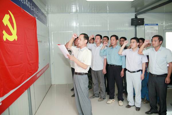 會議最后,汪書記帶領(lǐng)項目部全體黨員重溫了入黨誓詞。