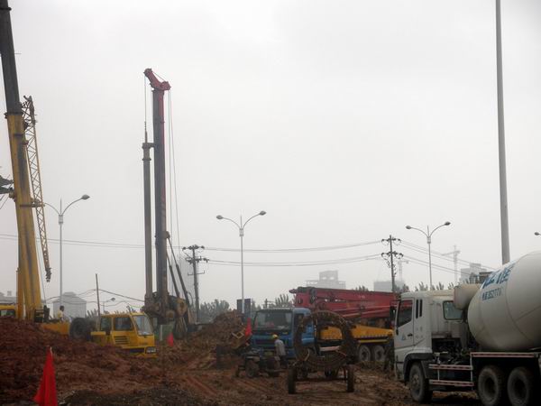 目前,項(xiàng)目部已具備辦公條件,主要管理人員已基本到位,道排、橋梁、樁基、擋墻等施工隊(duì)伍已進(jìn)場(chǎng)施工,并于7月5日,完成首根樁基的澆筑。項(xiàng)目部在人員不足,桿管線、污水燃?xì)夤艿厘e(cuò)綜復(fù)雜等不利因素的影響下,利用現(xiàn)有條件充分挖掘工作面。截止7月17日,已完成駐地建設(shè),懷寧路下穿橋支護(hù)咬合樁33根、下穿橋樁基28根,翡翠路上跨橋鉆孔樁22根,棄土方14600方、溝槽開挖2840方,回填2180方,雨污水管道埋設(shè)約730米,累計(jì)完成產(chǎn)值約1000萬(wàn)元。