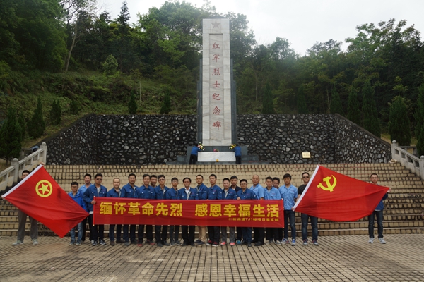 銅鼓嶺紅軍烈士紀(jì)念碑是為紀(jì)念紅軍在長征途中經(jīng)過廣東省仁化縣城口鎮(zhèn),阻擊敵軍而英勇獻(xiàn)身的烈士們所建。項目黨支部副書記張正勇帶領(lǐng)全體黨員重溫了入黨誓詞,向革命英雄敬獻(xiàn)了花籃,并瞻仰了革命烈士紀(jì)念碑、烈士事跡紀(jì)念墻等。