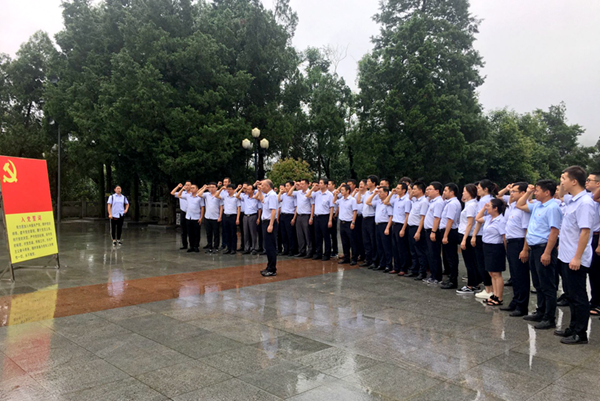 下午,大家冒著細雨來到金寨縣紅軍廣場,向革命烈士敬獻了花籃。在巍峨的革命烈士紀念塔下,面對鮮艷的黨旗,公司黨委委員、總工程師彭申凱帶領全體黨員一起重溫了入黨誓詞。
