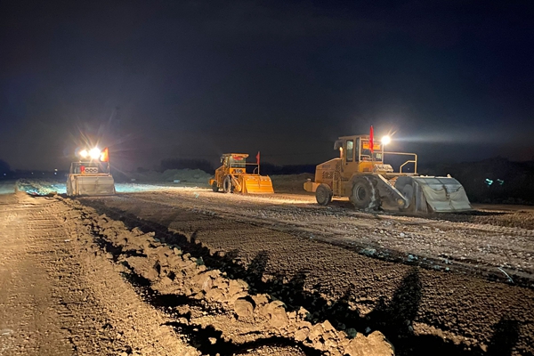 面對4個路基班組進度快慢不一問題,項目堅持以快帶慢、統(tǒng)籌協(xié)調,有的放矢,確保進度,實現(xiàn)路基路面轉序環(huán)節(jié)“無縫對接”。截至目前,路基土石方超計劃完成,樁基、涵洞、管道工程穩(wěn)步推進,提前一個月進入水穩(wěn)底基層施工,起步即掀起大干熱潮。