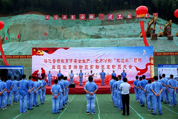 為迅速響應(yīng)集團(tuán)關(guān)于開展“戰(zhàn)疫情、搶工期、保目標(biāo)、促超產(chǎn)”勞動(dòng)競(jìng)賽的號(hào)召,以警示教育成效促進(jìn)生產(chǎn)經(jīng)營(yíng),更好壓實(shí)安全主體責(zé)任,確保二季度結(jié)束時(shí)實(shí)現(xiàn)“雙過半”目標(biāo)。6月3日上午,道路分公司黨總支在蕪黃路基07標(biāo)項(xiàng)目舉行“深化警示教育促安全生產(chǎn)、全力沖刺雙過半目標(biāo)”主題黨日活動(dòng)暨勞動(dòng)競(jìng)賽動(dòng)員大會(huì),分公司主要領(lǐng)導(dǎo),江南片區(qū)項(xiàng)目黨員、職工代表50余人參加活動(dòng)。