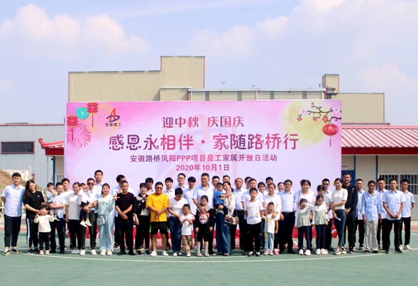 今年的中秋喜逢國慶,家與國撞了滿懷。在舉國歡慶、萬家團(tuán)圓的欣喜時刻,仍有很多路橋人為了工程建設(shè),舍小家、為大家,堅守崗位、奮戰(zhàn)一線。為進(jìn)一步深化公司“家文化”建設(shè),10月1日,鳳陽PPP項目黨支部精心組織開展了“感恩永相伴•家隨路橋行”員工家屬日活動,20余名員工家屬受邀到項目部與家人團(tuán)聚,共慶佳節(jié)。