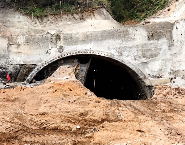 面對(duì)隧道圍巖差、跨徑大、洞口沉積淤泥難題,項(xiàng)目提前謀劃,強(qiáng)化過程控制,加強(qiáng)超前地質(zhì)預(yù)報(bào)及監(jiān)控量測(cè)頻率,及時(shí)改進(jìn)和優(yōu)化施工方案。對(duì)洞口沉積淤泥段采取科學(xué)有效措施,確保汛期來(lái)臨前完成了進(jìn)洞任務(wù),歷時(shí)210多天,順利實(shí)現(xiàn)了雙向貫通。