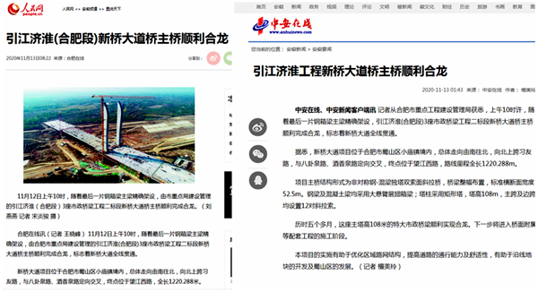 11月12日上午10時,隨著最后一片鋼箱梁主梁精確架設(shè),公司承建的引江濟(jì)淮(合肥段)3座市政橋梁工程二標(biāo)段新橋大道橋主橋順利完成合龍,全線實現(xiàn)貫通,人民網(wǎng)、中安在線、安徽電視臺、合肥電視臺等多家主流媒體聚焦報道。