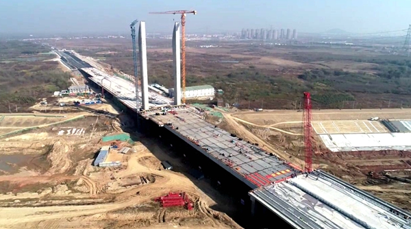 引江濟(jì)淮(合肥段)3座市政橋梁工程二標(biāo)段新橋大道橋主橋順利合龍