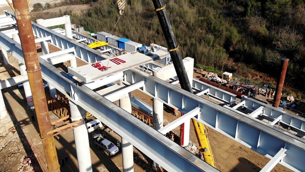 12月16日,蕪黃路基07標(biāo)項(xiàng)目?jī)身?xiàng)節(jié)點(diǎn)工程取得突破,下葉村特大橋鋼板組合梁橋面板順利完成首件安裝,馬鞍山隧道實(shí)現(xiàn)雙幅貫通,標(biāo)志著該項(xiàng)目控制性工程取得階段性勝利,朝著2021年建成通車(chē)目標(biāo)邁進(jìn)了堅(jiān)實(shí)一步。