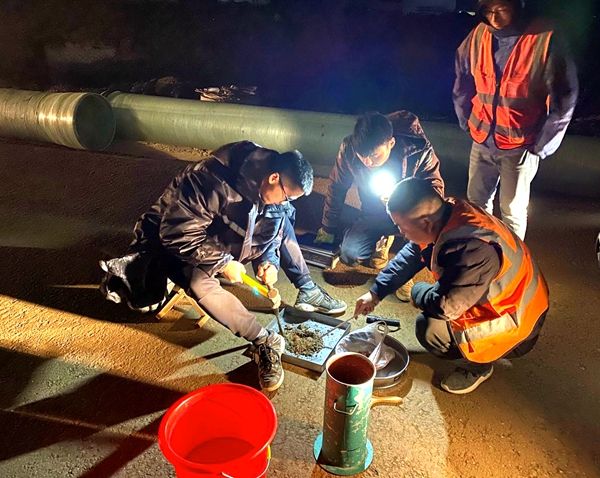 由于該項(xiàng)目施工區(qū)域位于交通干道,車輛、人員流動(dòng)量大,道路兩旁住房、廠房密布,大規(guī)模作業(yè)無法實(shí)施。針對(duì)種種困難和壓力,項(xiàng)目部精心謀劃,組織精干力量,分重點(diǎn)、分區(qū)域、分節(jié)點(diǎn),采用“插縫施工”思路,以點(diǎn)帶面,以面促片,順利完成路床交驗(yàn)、路面水穩(wěn)試驗(yàn)段鋪筑、污水管道施工和全線舊路面板破除等節(jié)點(diǎn)任務(wù)。