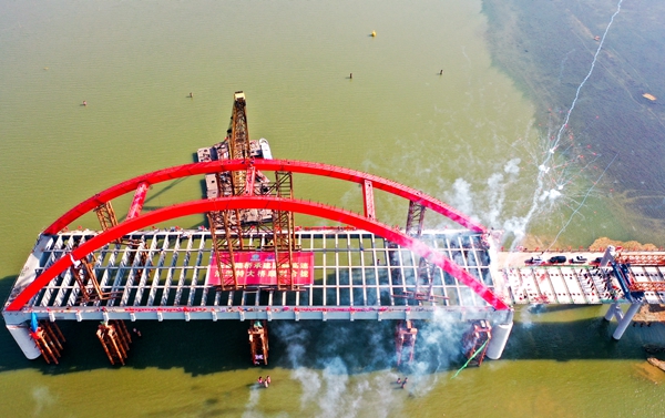 澮河新春起飛虹---固蚌高速02標(biāo)澮河特大橋主橋順利合龍