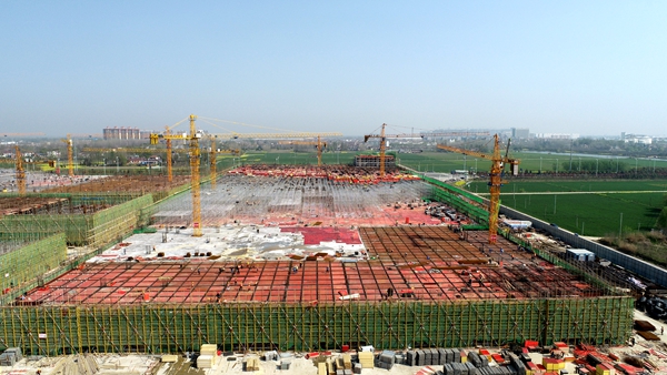 工期是項目擺在首位的管控要素。自開工以來,項目堅持產(chǎn)值與形象進度“雙控”,堅持以日保周、以周保旬、以旬保月。積極發(fā)揚“特別能吃苦、特別能戰(zhàn)斗”的企業(yè)作風,克服重重困難,搶晴天、戰(zhàn)雨天,與時間賽跑,晝夜奮戰(zhàn),一一消除不利因素。項目參建人員超2千人,大型施工機械設備近百輛。近期,項目平均每天澆筑混凝土1500方,最高峰超3000方,平均每月完成產(chǎn)值1億元。不到半年,陸續(xù)開啟三大廠房封頂施工,現(xiàn)場實現(xiàn)“一天一變化、一周一變樣、一月大變樣”。