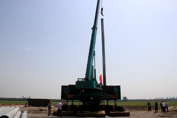 5月7日上午9點(diǎn)58分,安徽建工鋼結(jié)構(gòu)智能制造產(chǎn)業(yè)化基地項(xiàng)目1#廠房基礎(chǔ)第一根預(yù)制管樁試樁成功。