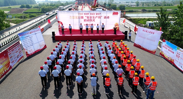 6月1日上午,道路分公司2021年“安全生產(chǎn)月”啟動儀式暨“學黨史、辦實事、筑安全、促生產(chǎn)” 主題黨日活動在合寧改擴建滁河大橋施工現(xiàn)場成功舉辦。公司黨委委員、副總經(jīng)理杜海峰出席活動并宣布“安全生產(chǎn)月”啟動,分公司領(lǐng)導班子、后勤部門負責人,省內(nèi)各項目經(jīng)理、支部書記及安全部長,肥東片區(qū)項目黨員、團員青年及一線工人代表共計百余人參加活動。