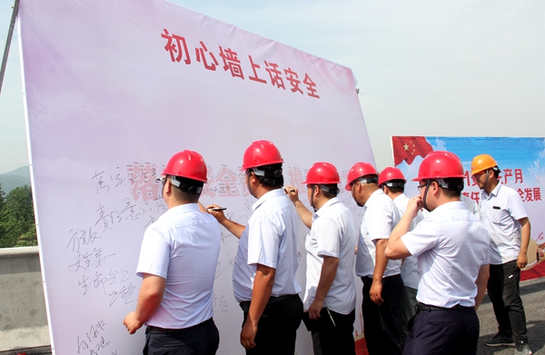 活動中,黨員安全員代表、技術(shù)員代表、勞務(wù)班組代表分別做了表態(tài)發(fā)言。分公司總經(jīng)理張慶書宣讀了本次“安全生產(chǎn)月”活動方案,并帶頭宣誓?;顒舆€安排了“初心墻上話安全”集體簽名、改擴建安全生產(chǎn)標準化觀摩等環(huán)節(jié)。