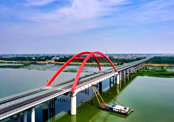 固蚌高速是安徽省縣縣通高速重點(diǎn)建設(shè)項(xiàng)目。在全省首次采用提籃系桿鋼箱拱橋施工工藝,施工技術(shù)難度大、任務(wù)重。開(kāi)工以來(lái),在公司大力支持和精心幫扶下,項(xiàng)目堅(jiān)持以黨建為引領(lǐng),克服疫情汛情等不利因素影響,圍繞中心工作,堅(jiān)持高質(zhì)量、高標(biāo)準(zhǔn)、嚴(yán)要求,提前3個(gè)月完工,以?xún)?yōu)異的成績(jī)向建黨100周年獻(xiàn)禮。