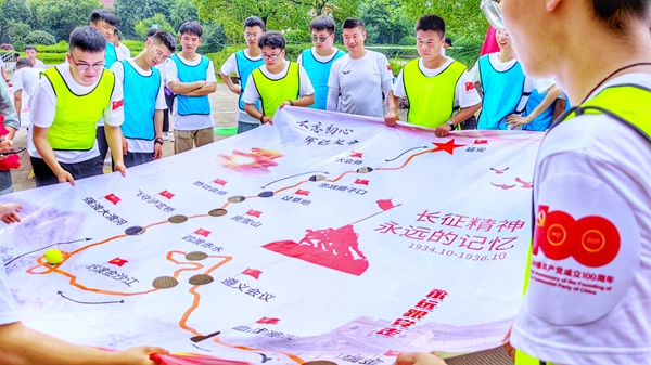 在新四軍江北指揮部紀(jì)念館,全員參觀了館藏的200余幅珍貴歷史照片、圖表和文獻(xiàn)資料,認(rèn)真了解了新四軍組建、發(fā)展和壯大的歷程,切實的感受革命先烈們?yōu)榱诵轮袊膭倮麙侇^顱灑熱血的大無畏精神。隨后,大家共同完成了《歌唱祖國》合唱、“長征精神”、“雷區(qū)取水”、填寫入職寄語和觀看愛國主義教育片《建黨偉業(yè)》等一系列團(tuán)建活動,在培養(yǎng)新員工團(tuán)隊協(xié)作能力的同時,進(jìn)一步加強(qiáng)了紅色教育。