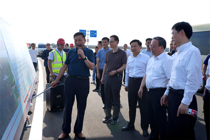 6月9日,安徽省交通運(yùn)輸廳黨組書(shū)記、廳長(zhǎng)聶愛(ài)國(guó)赴公司承建的六安G237金舒大道一期項(xiàng)目調(diào)研指導(dǎo)工作。六安市委副書(shū)記、市長(zhǎng)潘東旭,省交通運(yùn)輸廳有關(guān)部門(mén)負(fù)責(zé)同志,六安市交通運(yùn)輸局黨組書(shū)記、局長(zhǎng)朱宏,公司黨委書(shū)記、董事長(zhǎng)錢(qián)申春等參加調(diào)研。