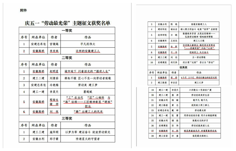 安徽路橋公司在集團慶五一“勞動最光榮”主題征文活動中喜獲佳績