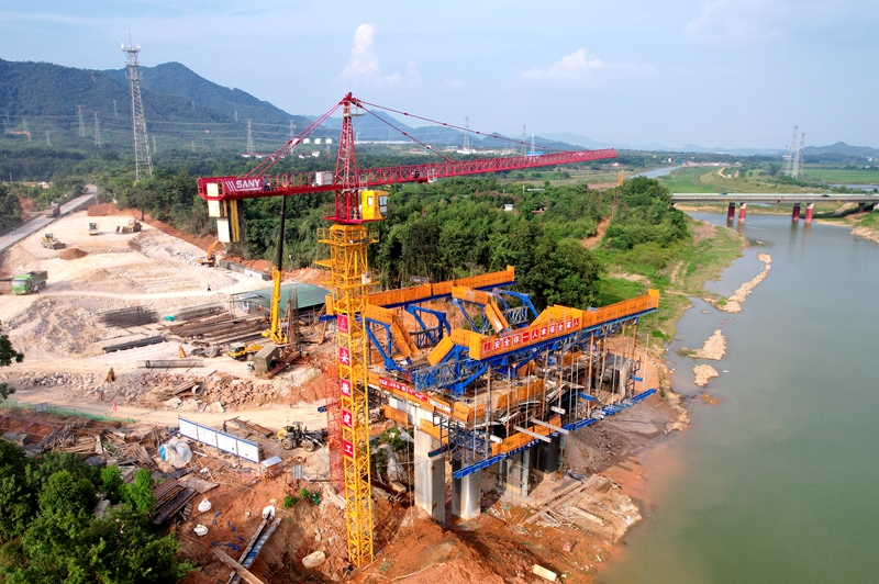 (鳳毛快速通道西淝河特大橋梁板架設(shè))