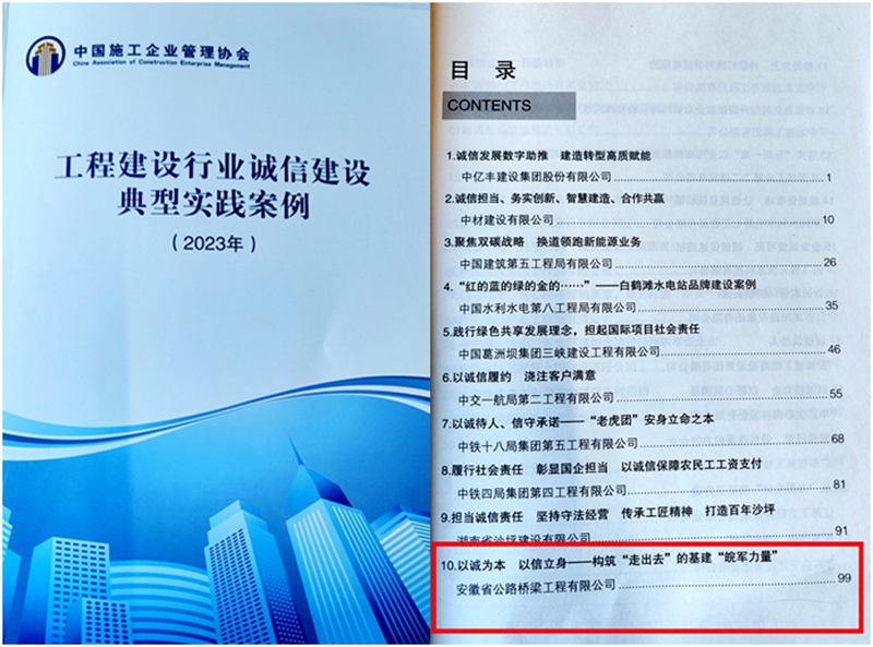 近日,從中國施工企業(yè)管理協(xié)會(huì)傳來喜訊,公司入選“2023年工程建設(shè)行業(yè)誠信建設(shè)典型實(shí)踐案例”。