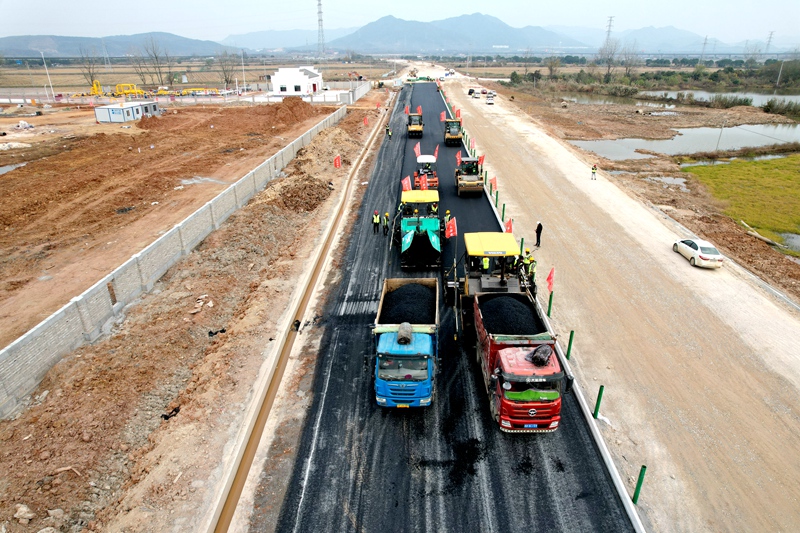 【百日攻堅大會戰(zhàn)】S219青陽童埠段改建工程瀝青下面層順利攤鋪