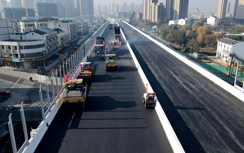 【百日攻堅(jiān)大會(huì)戰(zhàn)】金寨南路快速化改造(望水路-站前路)項(xiàng)目主橋?yàn)r青路面開(kāi)始攤鋪
