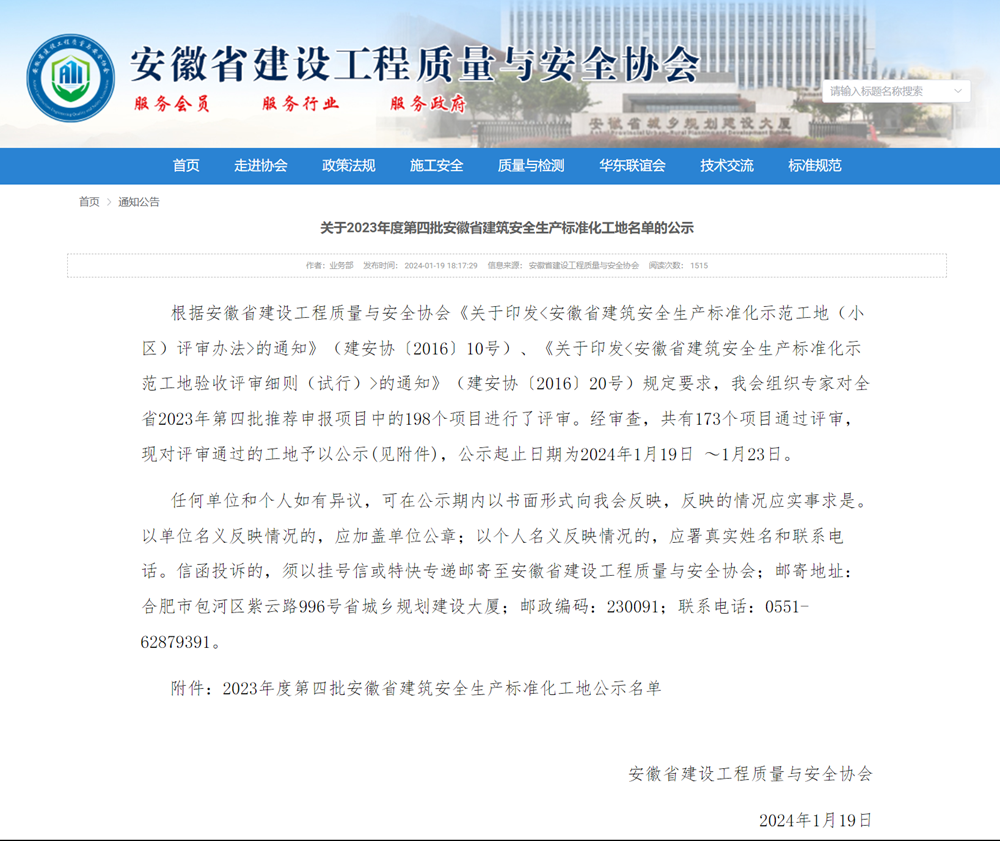 公司一批項目獲評“安徽省建筑安全生產(chǎn)標(biāo)準(zhǔn)化工地”