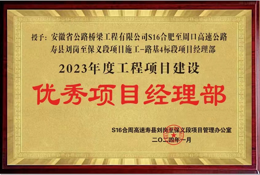 淮南交控(集團(tuán))有限公司S16合周高速壽縣劉崗至保義段項(xiàng)目辦發(fā)布2023年度“五比五看”評比得分通報,公司承建的S16合周高速4標(biāo)東淝河大橋項(xiàng)目在全線脫穎而出,位列年度綜合考評第一名,獲通報表揚(yáng),并被授予“優(yōu)秀項(xiàng)目經(jīng)理部”榮譽(yù)稱號。
