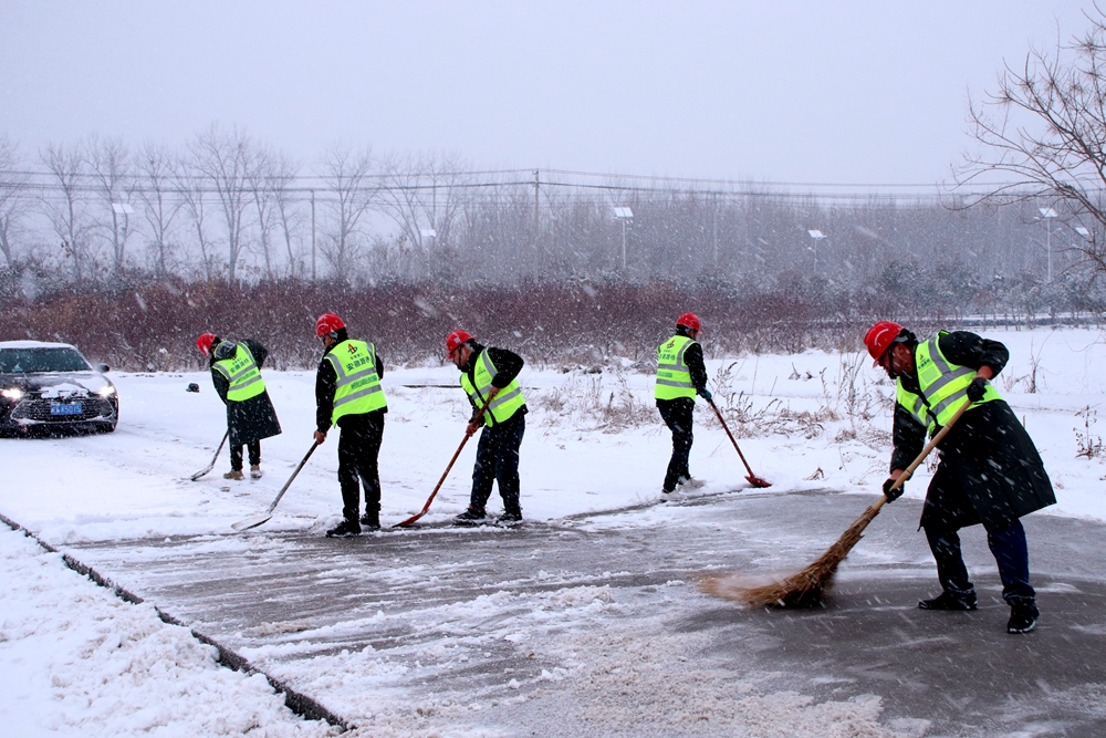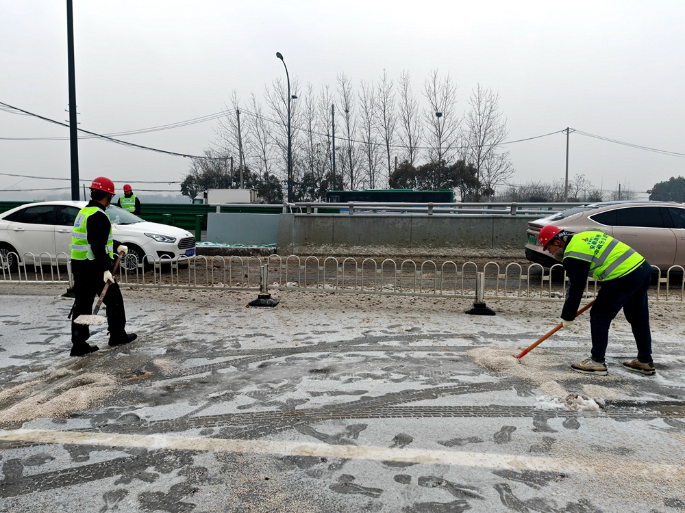 市政分公司G312合六路二標項目組織項目職工在交通要道撒放融雪劑并開展除雪志愿服務(wù)。