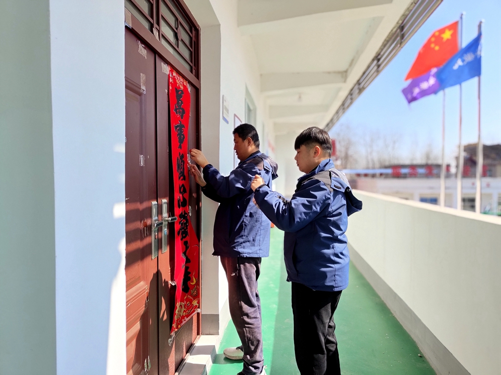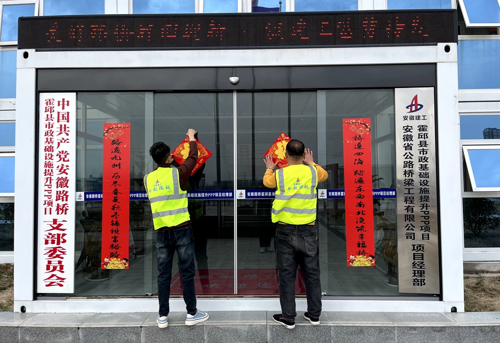 春節(jié)期間,霍邱縣市政基礎設施提升PPP項目值守人員與工友為項目門窗貼上春聯、福字,大家一起準備了年夜飯,共度佳節(jié),感受別樣的家的溫暖。