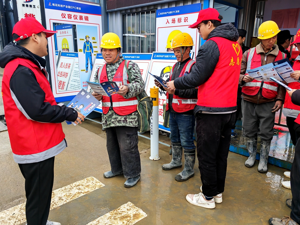 桃花科創(chuàng)產(chǎn)業(yè)園項(xiàng)目團(tuán)支部走進(jìn)工友群體,開展普法志愿宣傳宣講活動,旨在提升工友們的法律意識。