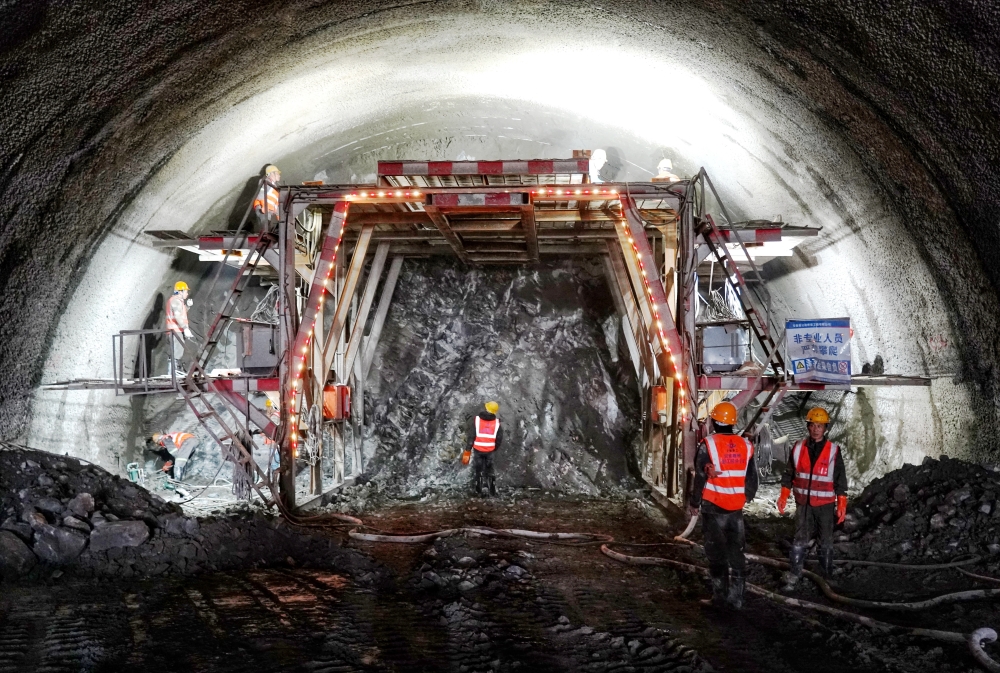 當天清晨,薄霧如輕紗般籠罩著大地,江梓山山腰的隧道口處,已是一片熱火朝天的繁忙景象。巨大的機械臂在晨光中揮舞,在施工現(xiàn)場劃出一道道剛勁有力的弧線。工人們身著醒目的安全服,手持風槍鉆,熟練而專注地操作著。隨著爆破孔眼逐個成孔以及炸藥裝填工作穩(wěn)步推進,爆破前的準備工作逐漸進入尾聲。