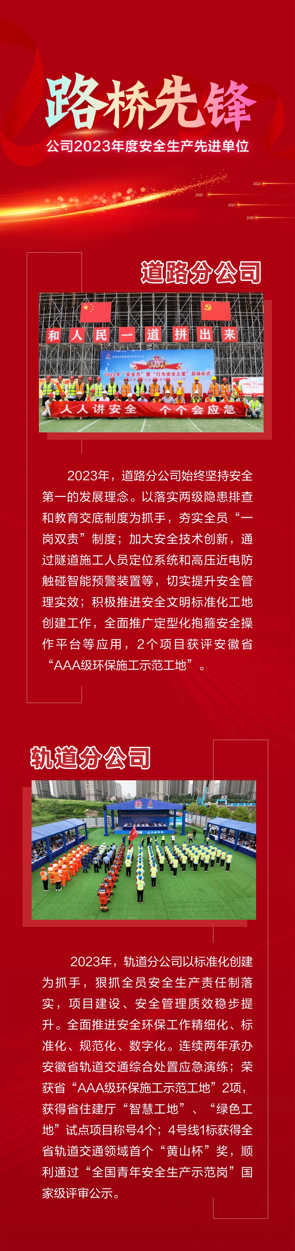 【路橋先鋒】公司2023年度安全生產(chǎn)先進(jìn)單位風(fēng)采展示 發(fā)布時(shí)間:2024年03月16日 來源:黨委組織部(人力資源部、黨委宣傳部)、所屬各單位 發(fā)布人:黨委組織部(人力資源部、黨委宣傳部) 作者: 瀏覽:2479次
