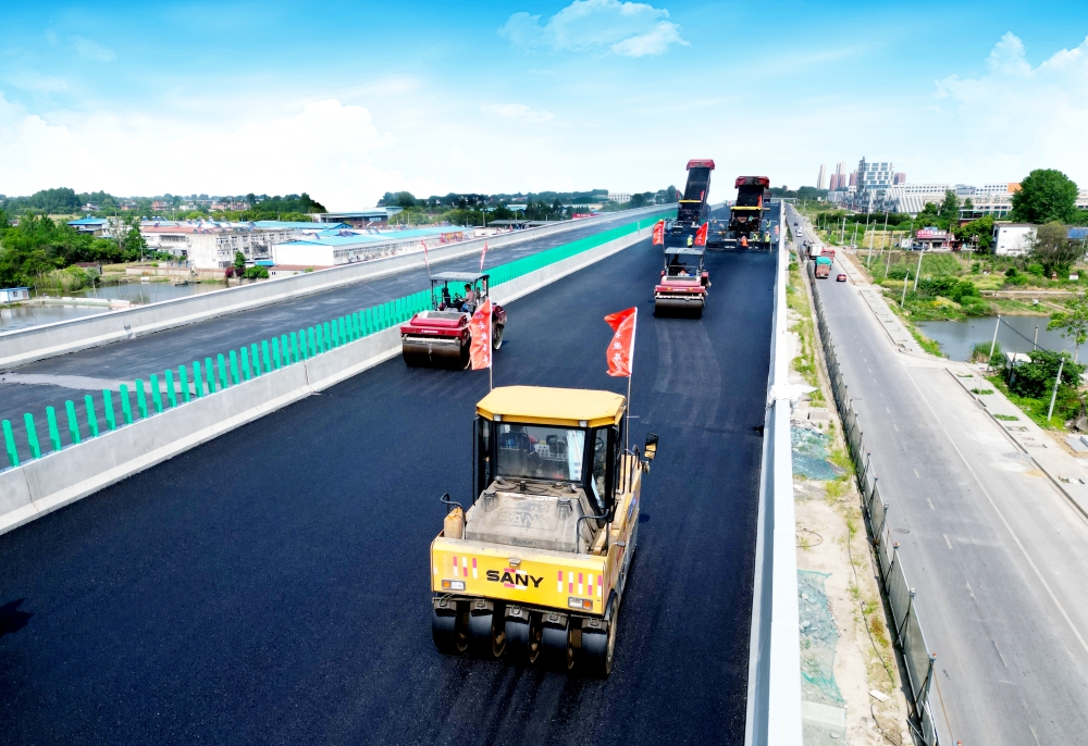 【路橋“競”行時(shí)】G347通江大道03標(biāo)西灣路主線高架橋?yàn)r青中面層攤鋪圓滿完成