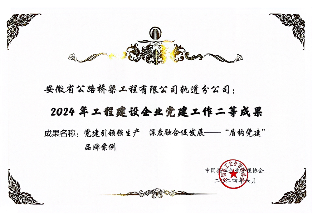 近日,中國施工企業(yè)管理協(xié)會公布2024年工程建設(shè)企業(yè)黨建工作優(yōu)秀成果名單,公司“‘1235’黨建工作法”、“‘盾構(gòu)黨建’品牌案例”獲評二等成果。