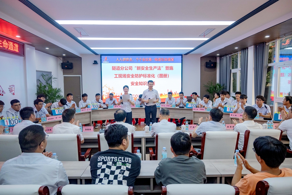 6月29日下午,隧道分公司組織開展“新安全生產(chǎn)法與施工現(xiàn)場安全防護(hù)標(biāo)準(zhǔn)化”知識競賽活動。省交通質(zhì)安中心安全生產(chǎn)監(jiān)管處副處長嚴(yán)搖鈴,分公司領(lǐng)導(dǎo)班子、機(jī)關(guān)各部門負(fù)責(zé)人、所屬項(xiàng)目經(jīng)理及職工代表現(xiàn)場觀賽。