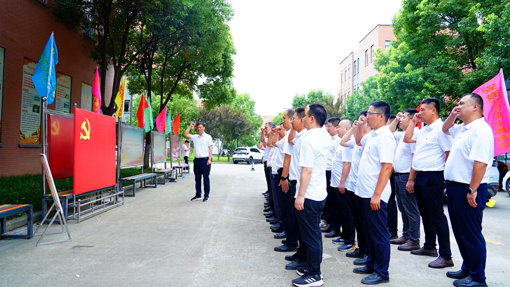 為進(jìn)一步構(gòu)建“資源共享、優(yōu)勢(shì)互補(bǔ)、互相促進(jìn)、共同提高”的黨建工作新格局。7月19日,市政分公司和道路分公司在安徽紅色文化博物館、桃花科創(chuàng)產(chǎn)業(yè)園項(xiàng)目聯(lián)合開(kāi)展“聯(lián)學(xué)聯(lián)建聚合力 共進(jìn)共贏譜新篇”主題黨日活動(dòng),并重溫了入黨誓詞。