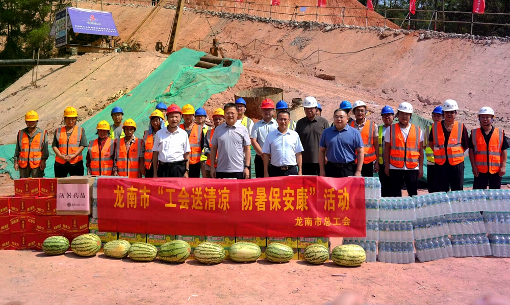 7月24日上午,龍南市委副書(shū)記、市長(zhǎng)彭江閩到G105龍南改建項(xiàng)目實(shí)地調(diào)研項(xiàng)目建設(shè)進(jìn)展情況,看望慰問(wèn)一線建設(shè)者,并送來(lái)防暑降溫物資。