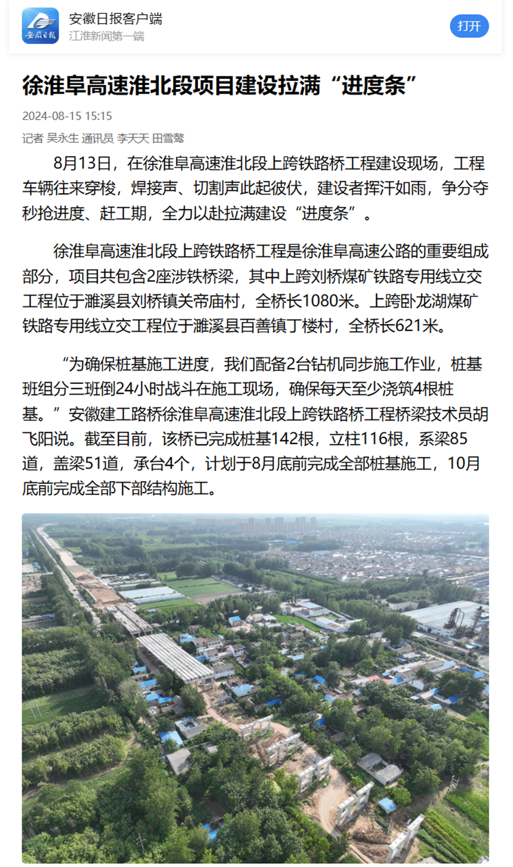【名媒聚焦】安徽日報客戶端聚焦徐淮阜高速淮北段上跨鐵路橋工程建設(shè)