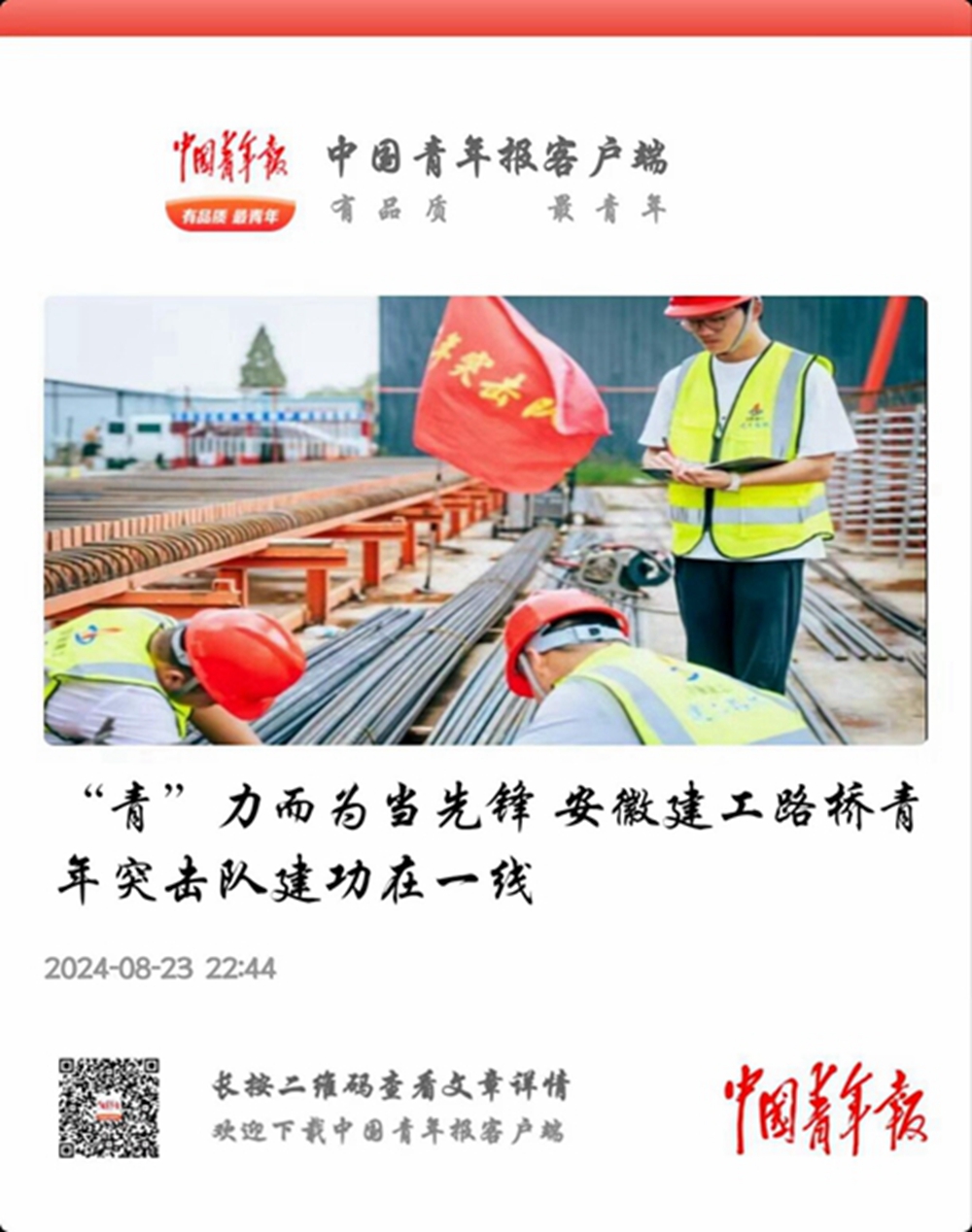 【名媒聚焦】中國青年報:“青”力而為當(dāng)先鋒 安徽建工路橋青年突擊隊建功在一線